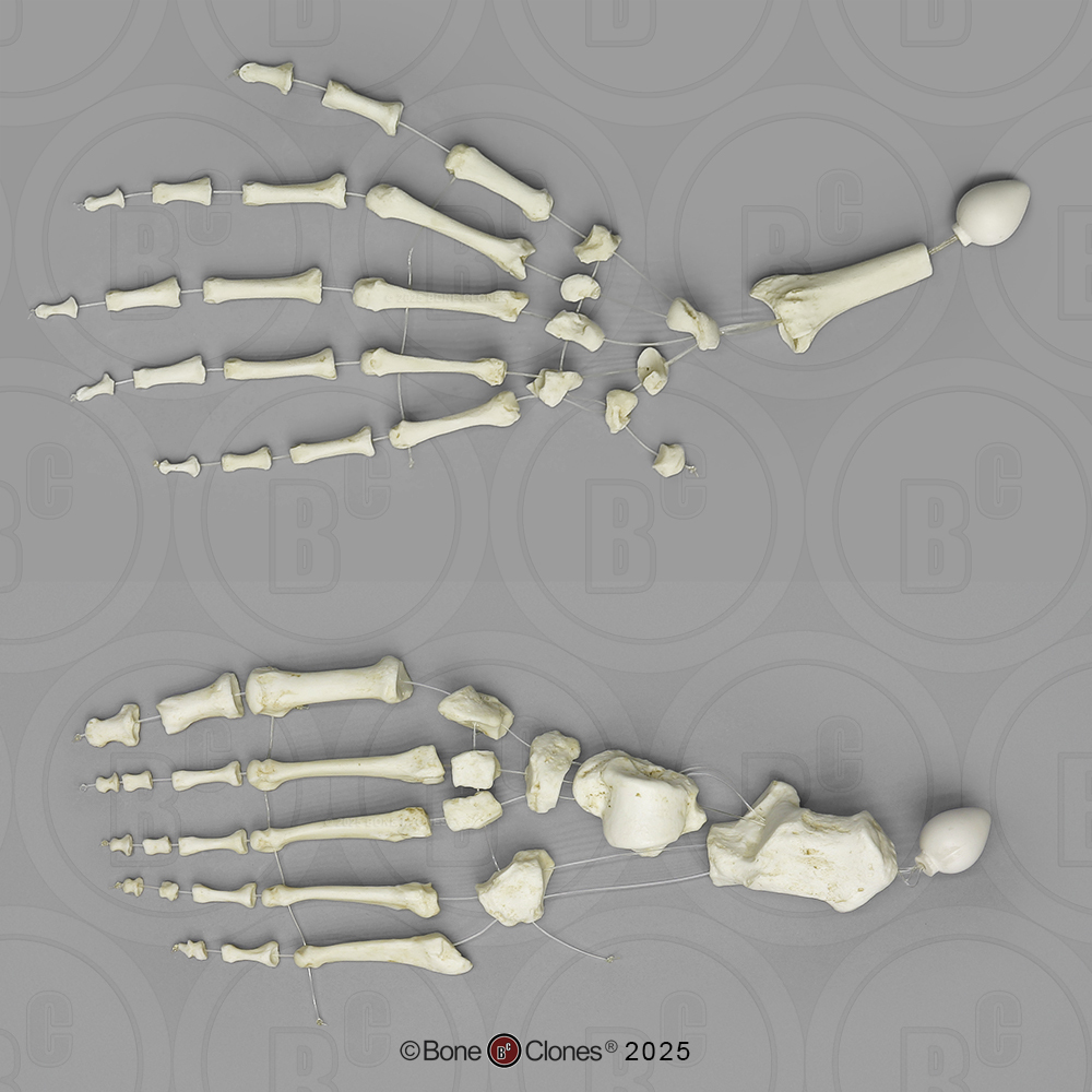 Optional add-on to any of our disarticulated hands or feet. We string filament through holes in each bone, loosely holding them all together to make handling & display easier and more convenient.