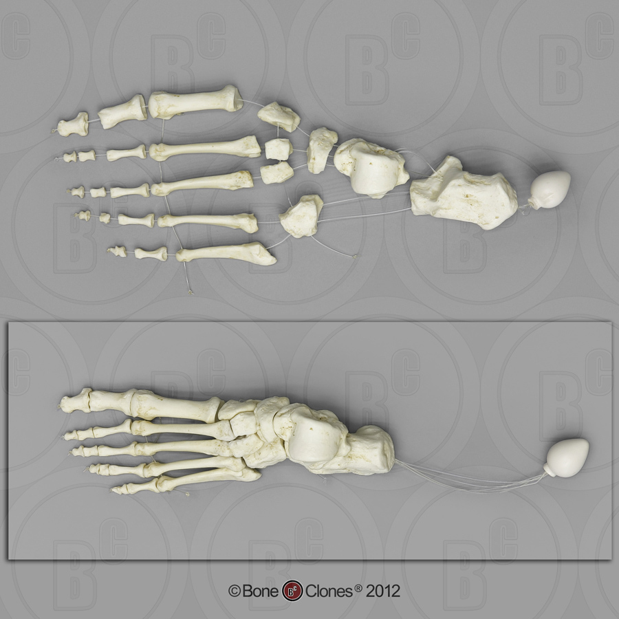 This Beauchene-style version of a human foot is designed so that the individual bones slide away from one another when one pulls on the nylon wire. This allows for the study of the articulating surfaces of each of the bones, which can be inspected from any angle. At the same time, the bones are securely anchored at each extremity so there is no risk of the assembly coming apart. If you desire durability and realistic detail, this product is an ideal substitute for natural bone. Another Bone Clones® Premium osteological product for teaching human anatomy!
