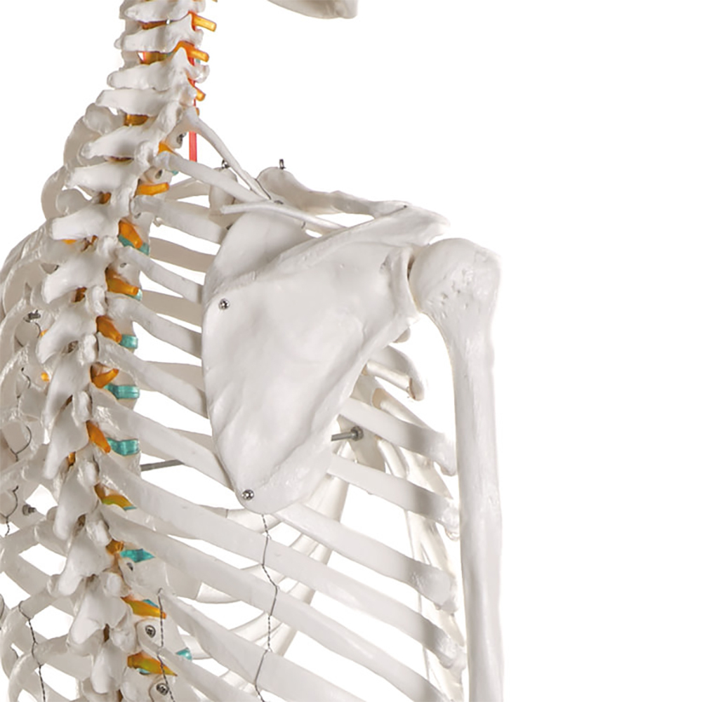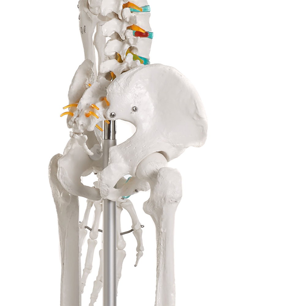 Bone Clones is offering this imported human skeleton to meet the needs of those with a more limited budget, but still looking for a quality product. This didactic skeleton comes from an adult male, features easily removable limbs, spinal nerves, blood vessels, a dorsolateral disc prolapse, and a skull with removable calvarium cap. Made of vinyl.