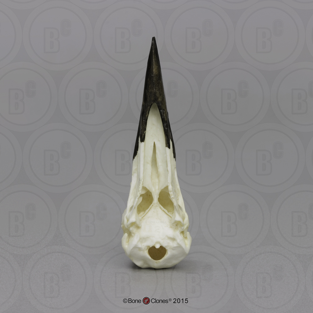 The pileated woodpecker is the largest woodpecker found in most of North America. Because of its size and chisel-shaped bill, the woodpecker is particularly adept at excavating and it uses this ability to construct nests, roost cavities and find food. 1-part skull (jaw glued to cranium).