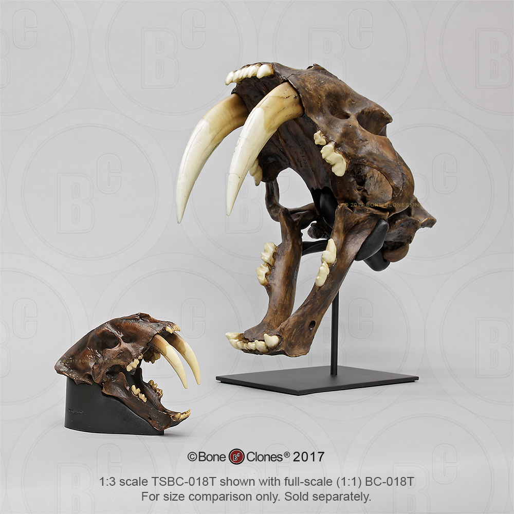 This 1:3 scale, incredibly detailed Smilodon fatalis (saber-toothed cat) miniature was created by scanning the full-sized (1:1) Bone Clones® BC-018T, printing at 1:3 scale, and meticulously prepping for molding. We think you will be amazed by the fidelity to its full-scale counterpart.